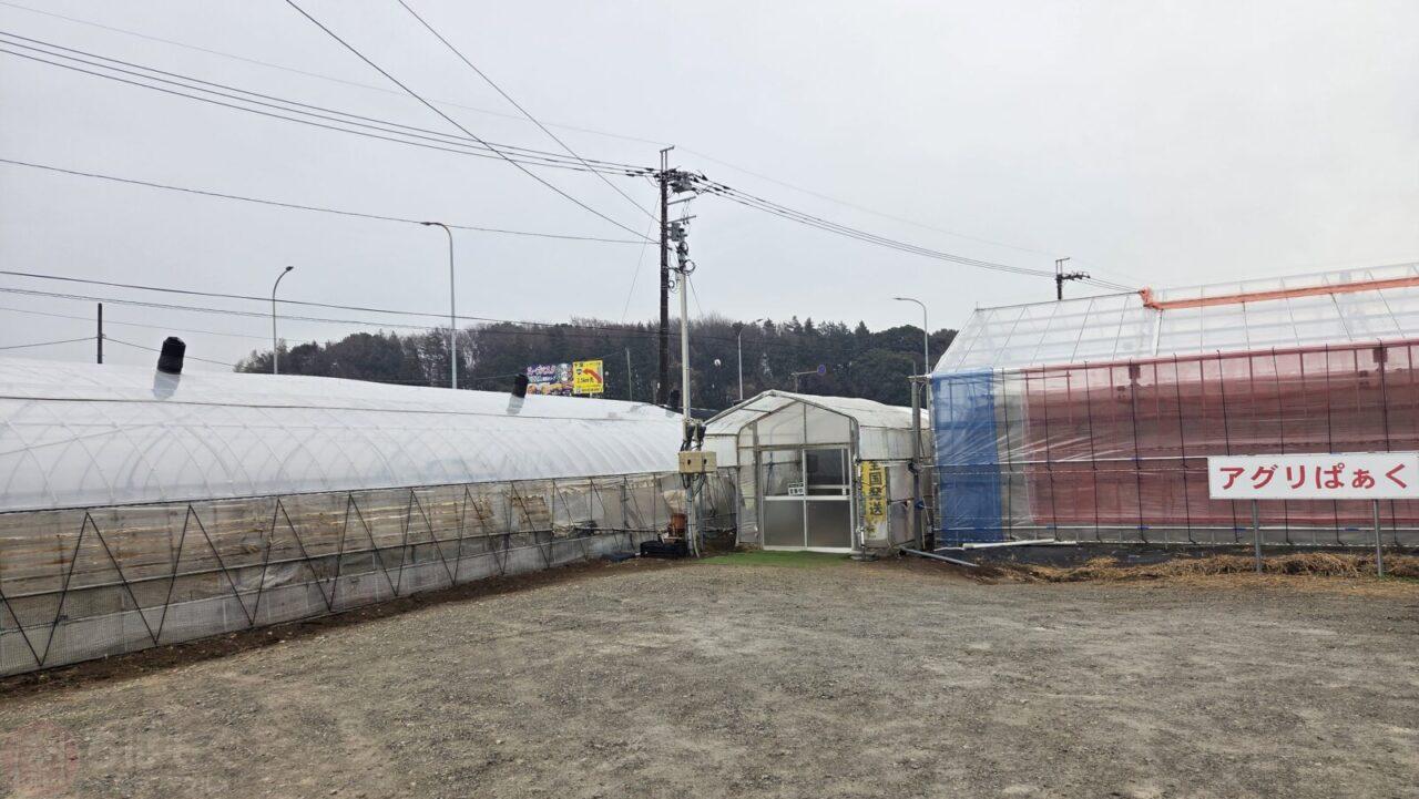 細い道に入り、すぐに左に曲がるとアグリぱぁくさんのハウスが見えます。