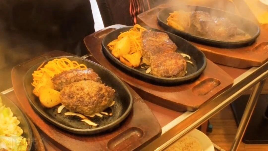 ・ステーキやハンバーグなどの熱々鉄板メニュー。