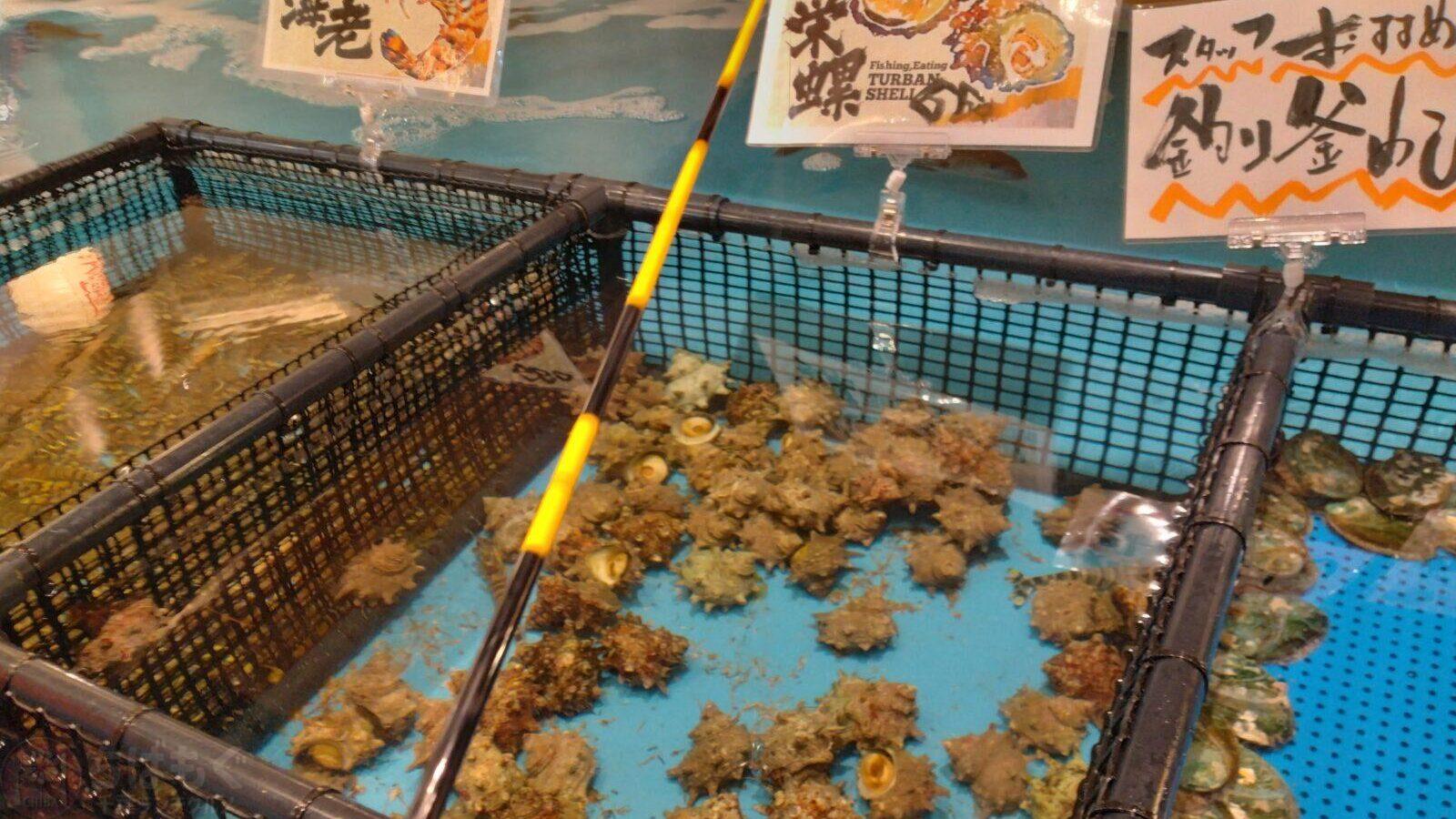 サザエを釣ろうとしましたが、全く持ち上がらずトングでとっていただきました。