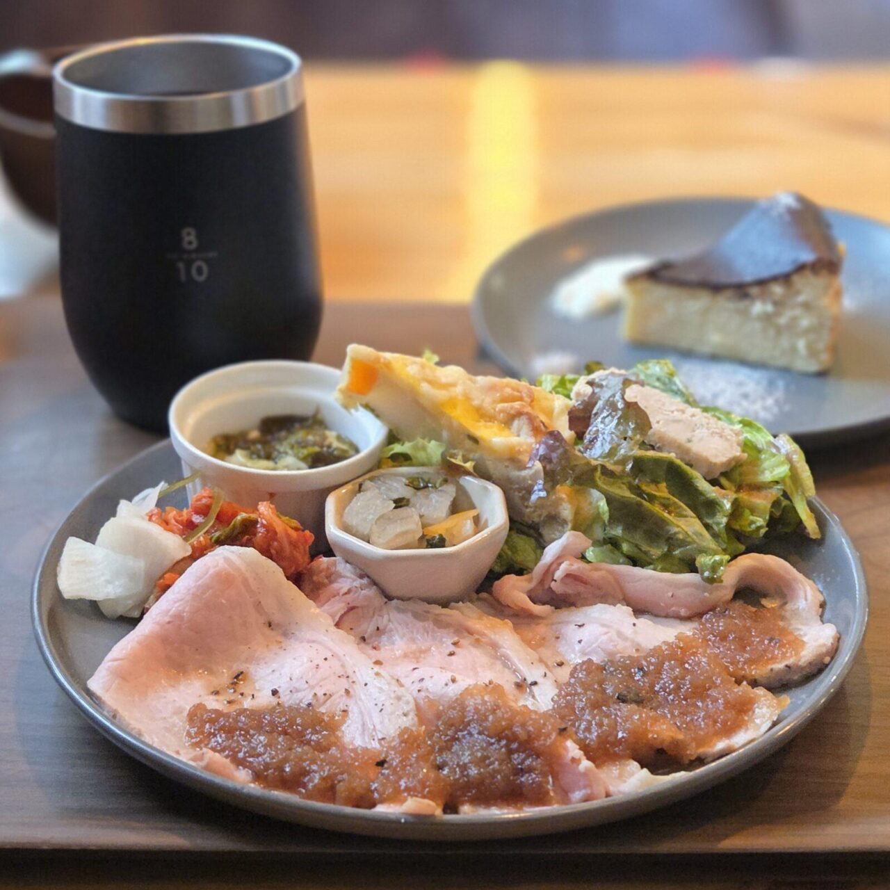 ・看板メニューの麴を使ったローストポークプレートや、小麦粉・白砂糖不使用のバスクチーズケーキなどがある。