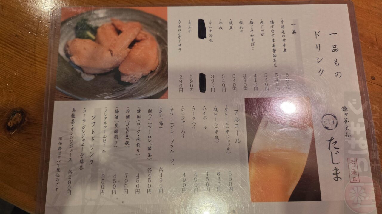 メニュー:たこ焼き居酒屋たじま
