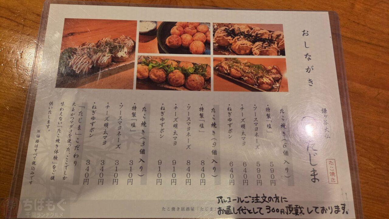 メニュー:たこ焼き居酒屋たじま