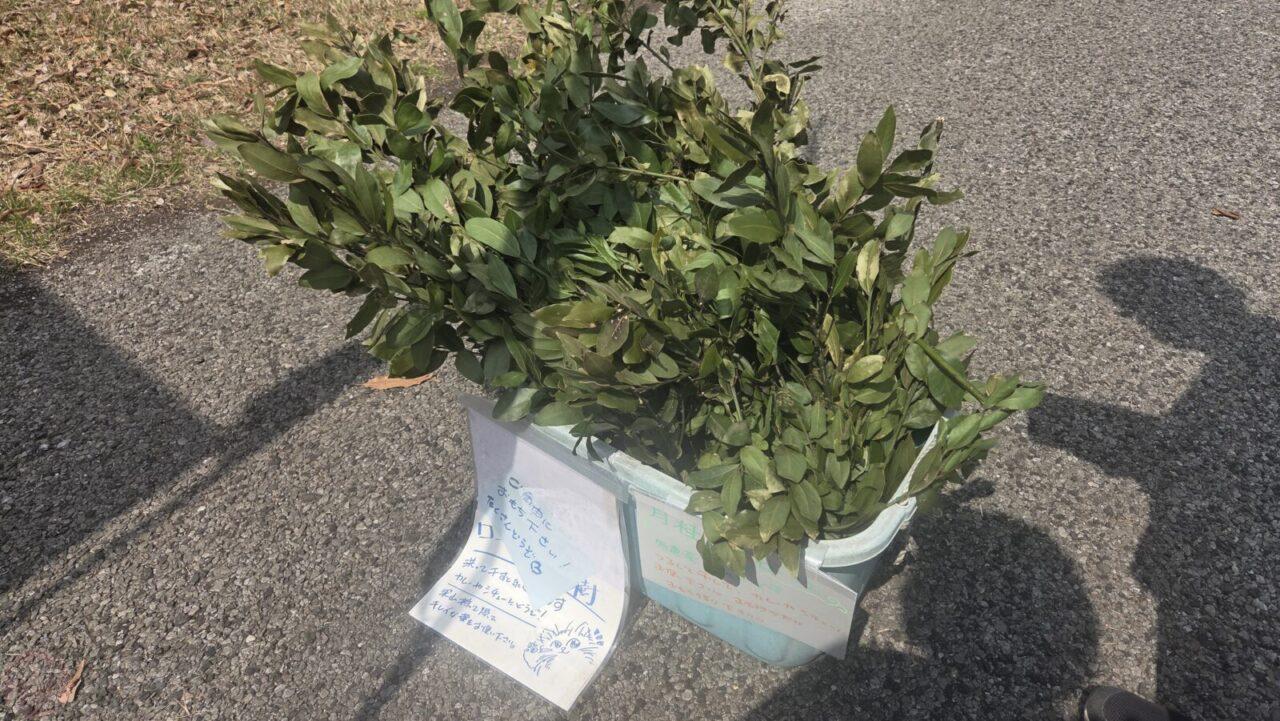 葉っぱが沢山ついている枝ごと配っていました。