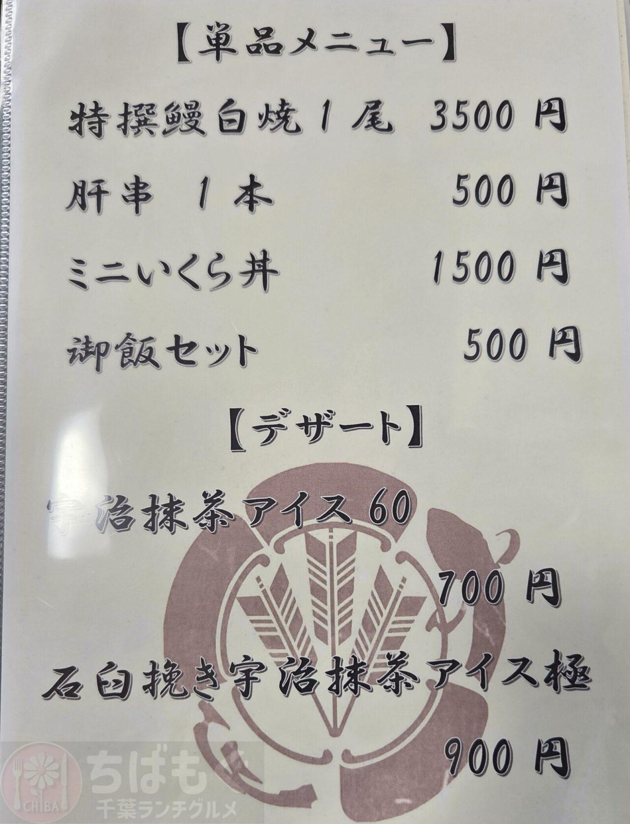 ・特選鰻白焼1尾 ¥3,500