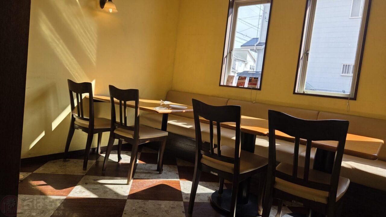 ・ソファ席、テーブル席があり、明るい店内。