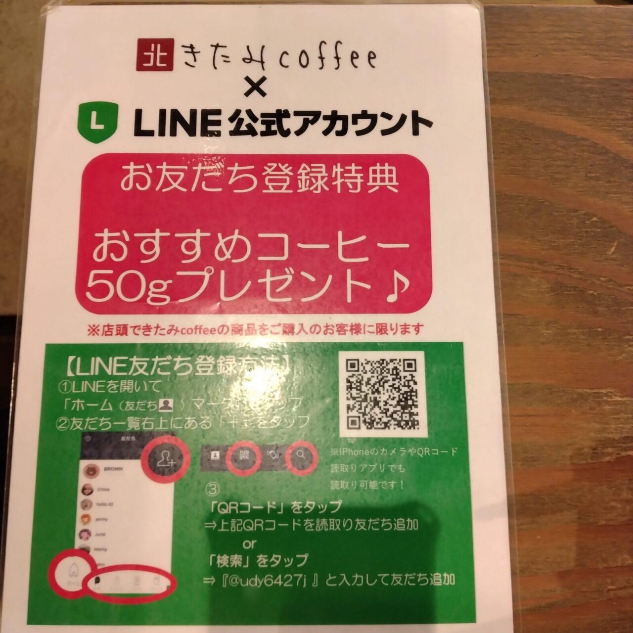 ・LINE登録で、無料でコーヒー豆をいただけた。