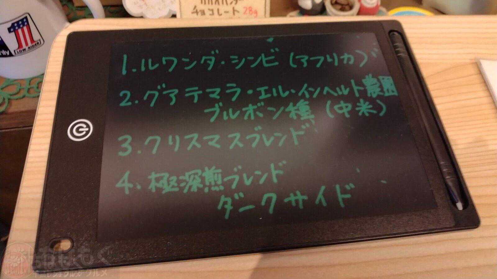 ・約4種類のコーヒーの試飲ができる。
